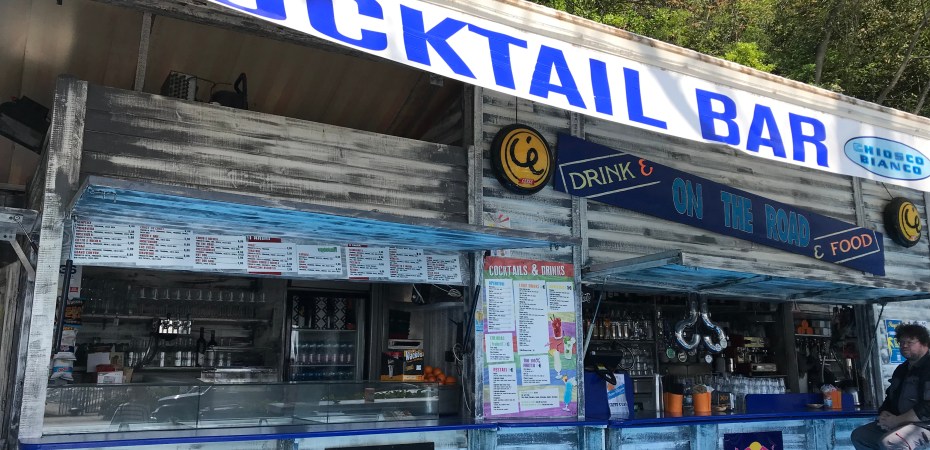 Just as we were leaving of Portopiccolo, near the “beach resort” Castelreggio, we found a series of food shacks or as they call them here, baracche, open for business. This was not originally part of our plan, but the scent of fried calamari in the air enticed us to stop and check it out. The one that seemed to be the source of the delicious aroma was LA BARACCA DEL PESCE (The Seafood Shack) and so we plopped ourselves into a booth facing the sparkling sea and began to peruse the ample menu.